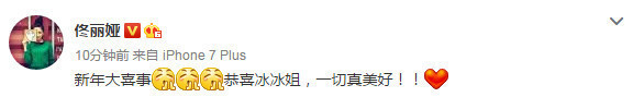 @佟丽娅:新年大喜事,恭喜冰冰姐,一切真美好!!