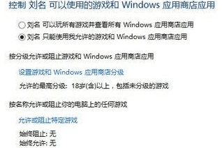 4.接下来便会弹出如下图中所示的设置界面了,咱们可以对该用户可以浏览的网站进行筛选,时间进行限制,还能限制使用相应的应用商店和游戏等等,功能非常的强大。