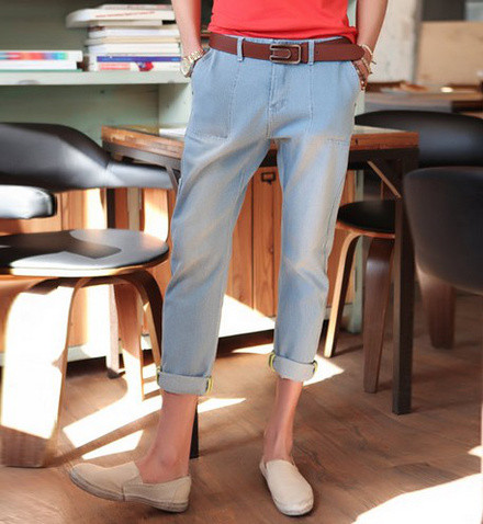 休闲风的装扮和紧身小脚裤搭配不会使休闲的装扮太过随意邋遢,更显清爽利落。