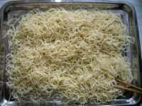 1.机轧湿面入开水锅中箪熟,滴入熟油,抖散晾凉备用。